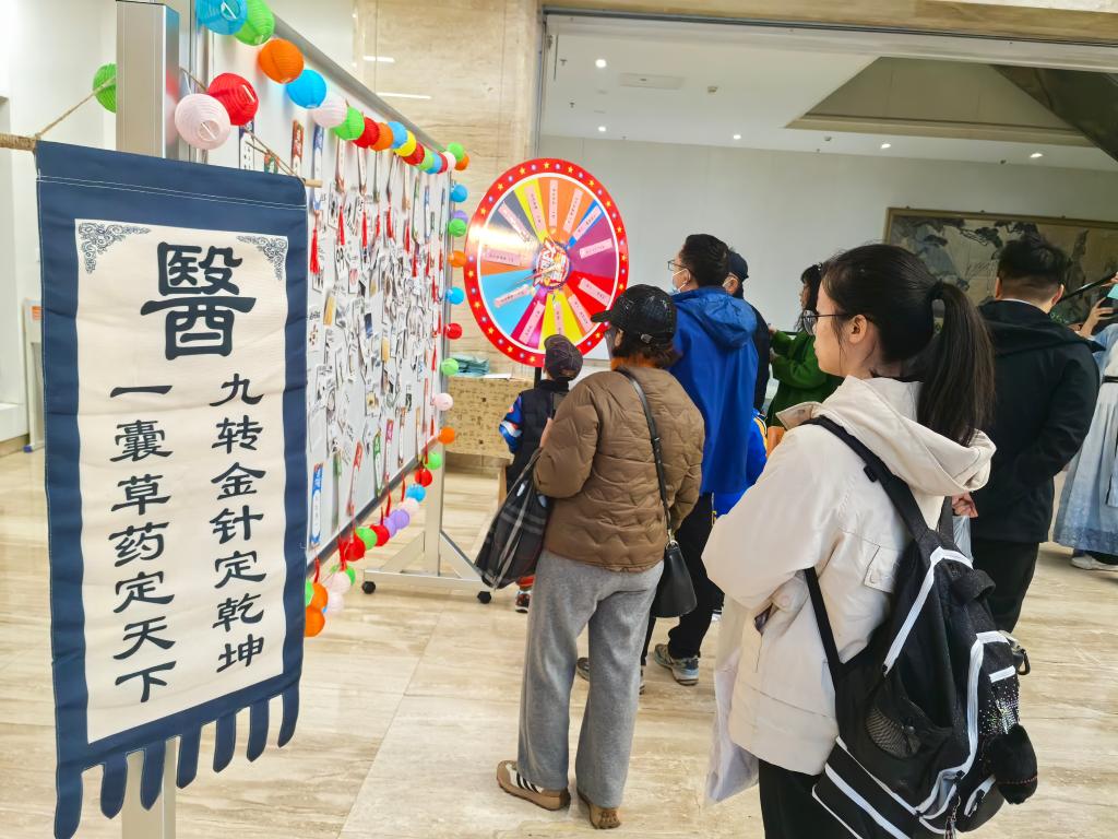 活动现场还专门设置了文化打卡区、“大转盘赢好礼”和“猜灯谜送健康”互动区。打卡区以“水火”为设计元素,融入中医经典图谱与膏方文化元素,成为市民拍照留念的热门地点;大转盘奖品涵盖养生茶饮、文创产品、疗法体验等;猜灯谜题目则围绕中医常识、膏方知识展开,让大家在欢乐中加深对中医药文化的了解。